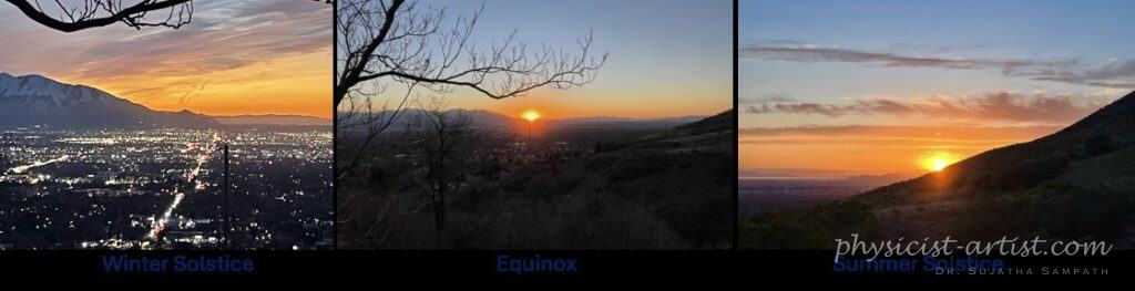 I’ve been watching the Sun’s annual trajectory from my vantage point in the Wasatch mountains for the last few years and been tracking the sunsets at the equinoxes and solstices with specific reference points.(image below)