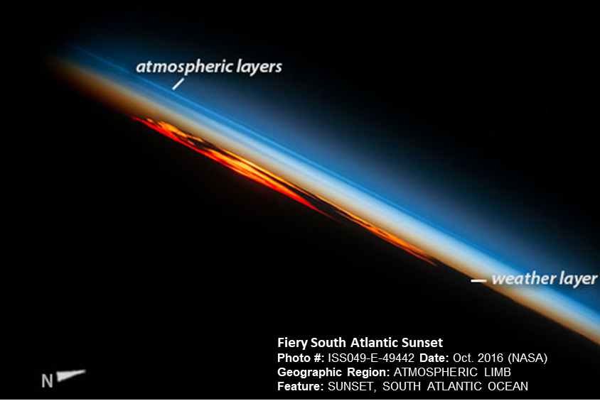 Many of the natural scenes we enjoy and cherish, viz. brilliant sunsets, snow-covered forests, to name a few, all happen right above the earth’s surface in that thin atmospheric layer which we get a better perspective of its relative size when viewed from space.